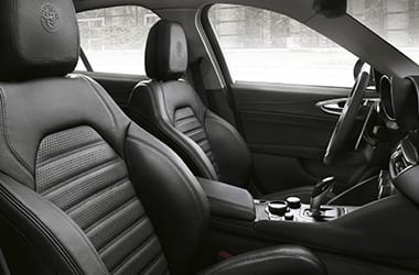 La Giuila Veloce offre l’une des meilleures expériences de conduite jamais vécues. L’habitacle a été conçu pour envelopper le conducteur et le mettre en prise directe avec le caractère sportif d’une Alfa Romeo. Cette sensation résulte également du soin apporté aux matériaux utilisés pour cette version, tels que le cuir habillant les sièges sport et les inserts en aluminium sur le tableau de bord, le tunnel central ou l’intérieur des portières. Autant d’éléments qui font ressortir l’esprit sportif de la Giulia Veloce.