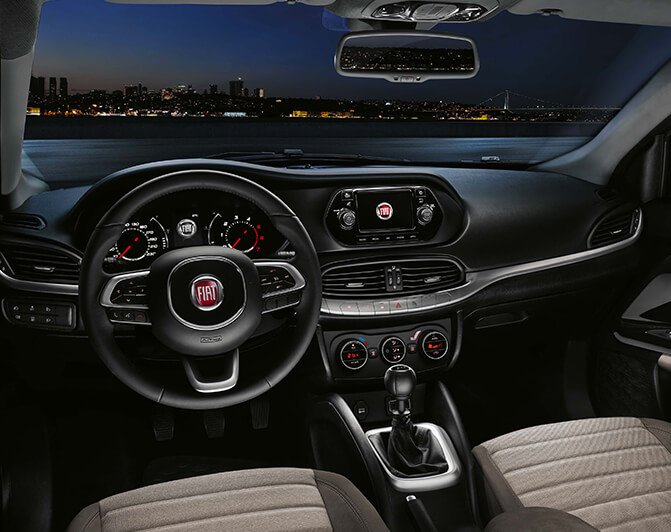 À l’intérieur de la Fiat Tipo, vous trouverez un espace convivial et fonctionnel. Des matériaux bien choisis et des détails ergonomiques créent un intérieur confortable. Les sièges confortables offrent un soutien adéquat pendant les longs trajets, tandis que la disposition bien pensée des panneaux assure un accès facile aux commandes importantes.